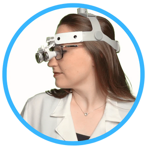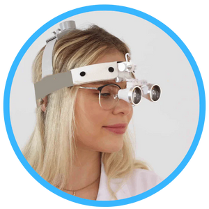 Glass lenses with 2.5x or 3.5x magnification and focal length of 30 to 42 centimeters.